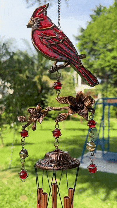 • Material: Hand-craft red cardinal with glitter, a copper-plated metal blossom, and elegant glass beads, aluminum tubes build for outdoor use