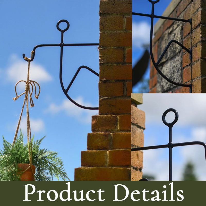 Durable metal construction securely holds hanging flower pots, baskets, wind chimes, or lanterns.