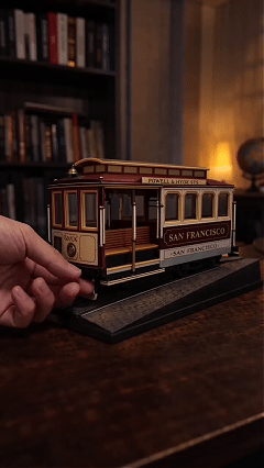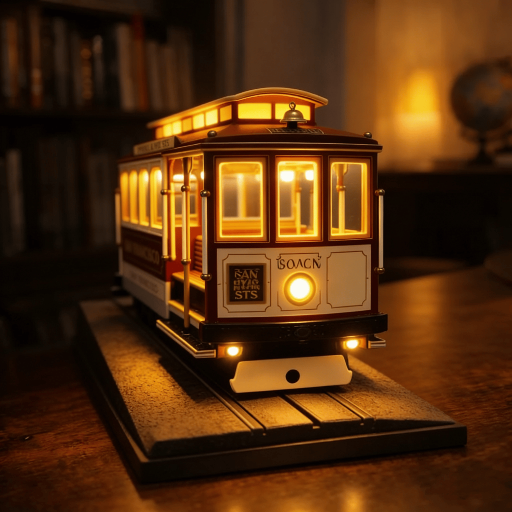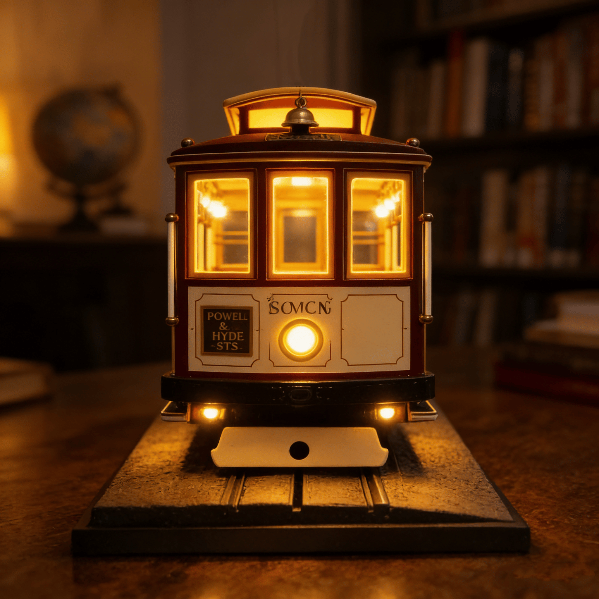 Iconic cable car design inspired by San Francisco’s historic streetcars with authentic details like signage, windows and interior seating, featuring soft golden lighting that creates a relaxing, nostalgic atmosphere perfect for evenings, with highly detailed craftsmanship from the base to the interior structure that makes it a delicate miniature work of art, while also serving as an attractive statement decor piece and conversation starter for your desk, shelf or nightstand.